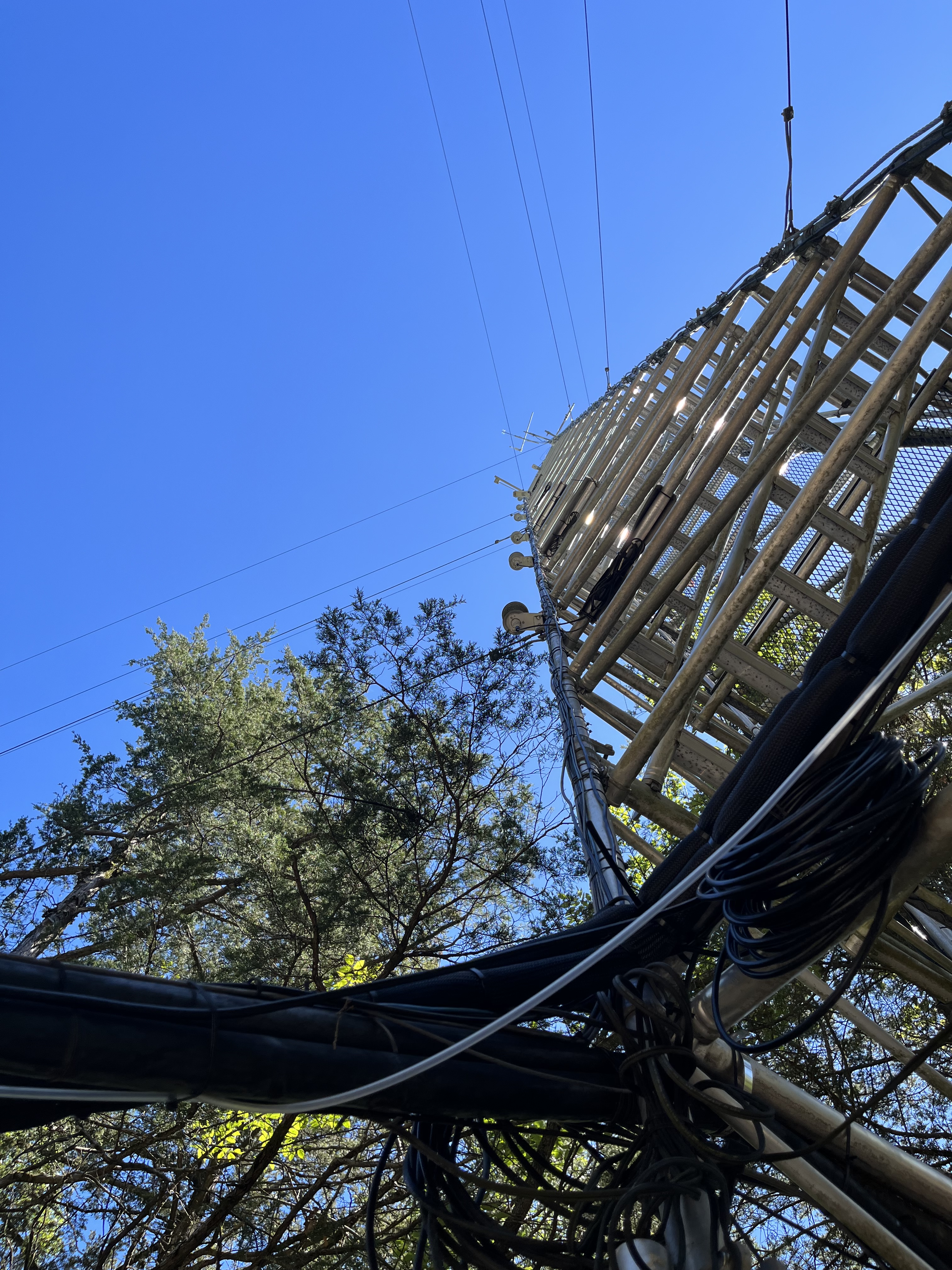 The tower itself is home to several instruments used to monitor net ecosystem exchanges by measuring wind velocities, gas concentrations, and temperature. This provides us with data to look at how eddies (whirls of air) move gases and heat – and how much of each is exchanging between the forest and atmosphere.