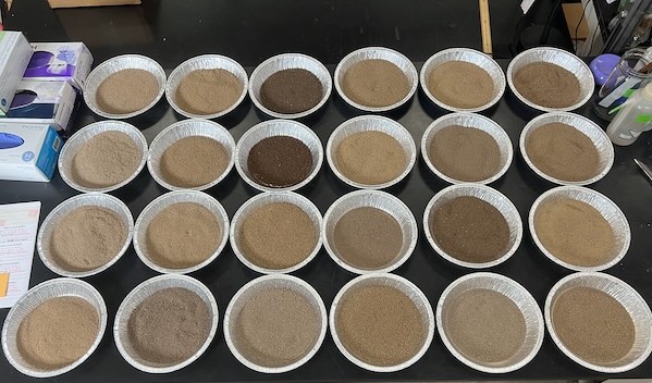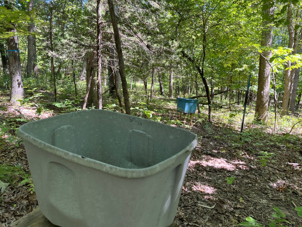 Two containers are deployed in each of the 24 vegetation plots. The litter that accumulates is collected monthly (twice monthly during senescence) and dried. The dried contents are separated into two sizes of woody debris, leaf matter, and reproductive matter.